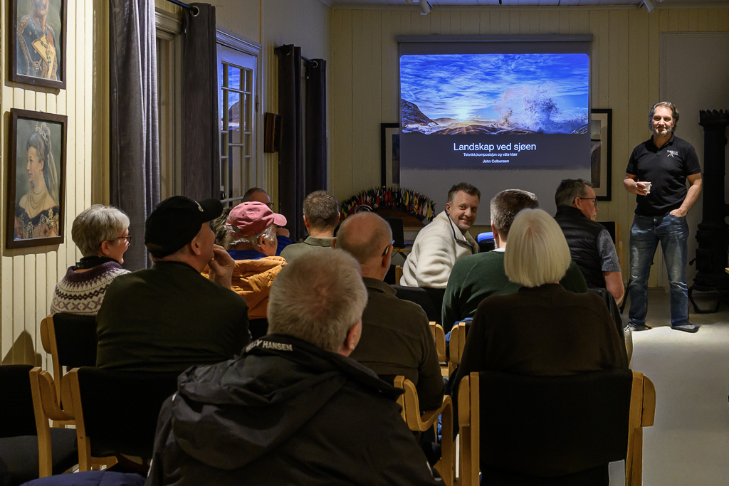 Første ordinære medlemsmøtet i år bød på fullt hus og god stemning. John åpnet kvelden med foredrag om landskap ved sjøen. Et foredrag som omhandlet utstyr, teknikker, komposisjon og ikke minst en del tips basert på erfaring gjennom 40 år.