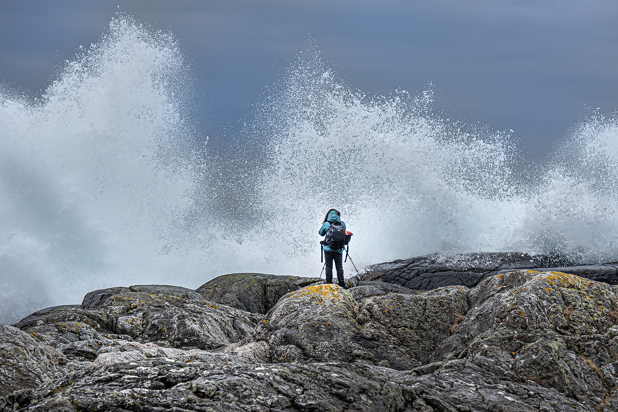 Om bølgene går innover eller er på vei ut igjen gir også forskjellig uttrykk. Tenk dessuten komposisjon: Bruk linjene i berget, holmer i horisonten, fargekontraster, f.eks. tare i forgrunnen bevisst i forhold til komposisjon. Det skaper balanse, dybde og spenning i bildene.