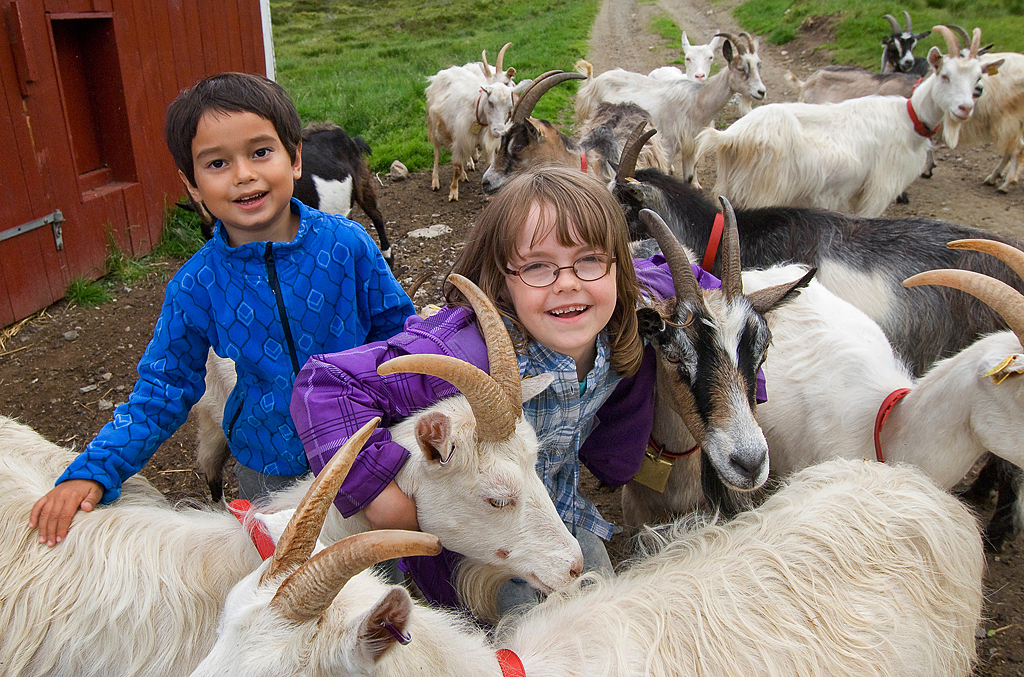 Geiter på Setra, spennande om nokre tiår - menneske og dyr i samkvem. Foto: Edmund Melkild |